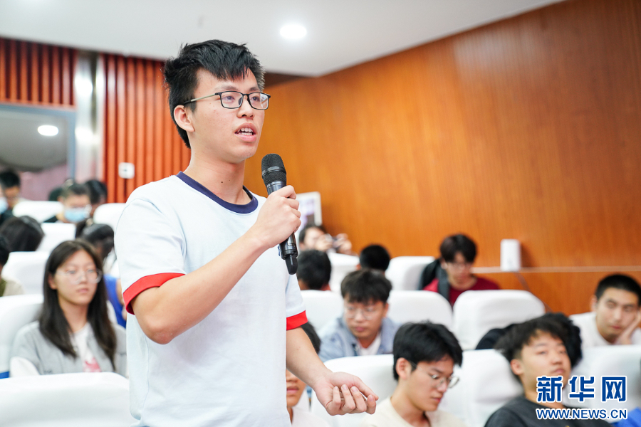 11月2日,福州大学,一名学生在互动环节提问。新华网 肖和勇 摄