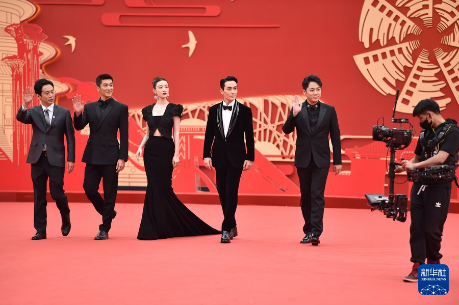 4月21日,《消失的她》剧组成员在第十三届北京国际电影节开幕红毯仪式上。新华社记者 陈钟昊 摄