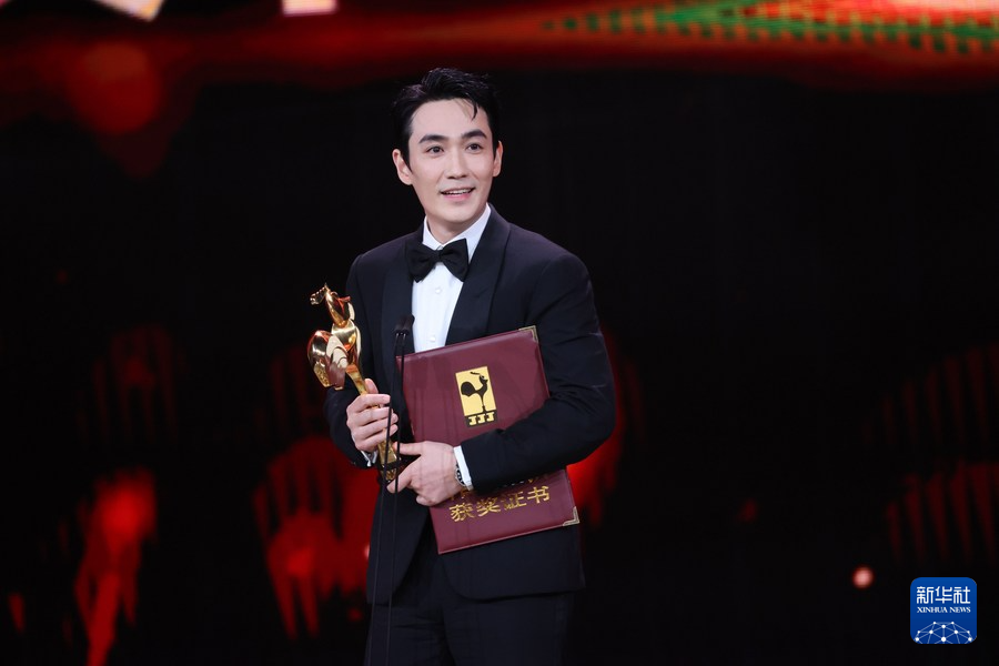 2022年11月12日,朱一龙凭借《人生大事》获得第35届中国电影金鸡奖最佳男主角奖。新华社发(曾德猛摄)