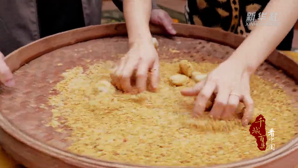 立冬时节,在福建省泉州市德化县,必不可少的美食就是糍粑。将手工捶打的糯米糍粑在砂糖花生碎里滚过后食用,口感软糯香甜。立冬时节打糍粑不仅仅为了吃,同时也是在庆祝丰收年景,祈望来年生活更美好,因此也被称作“冬福”“谢冬”。