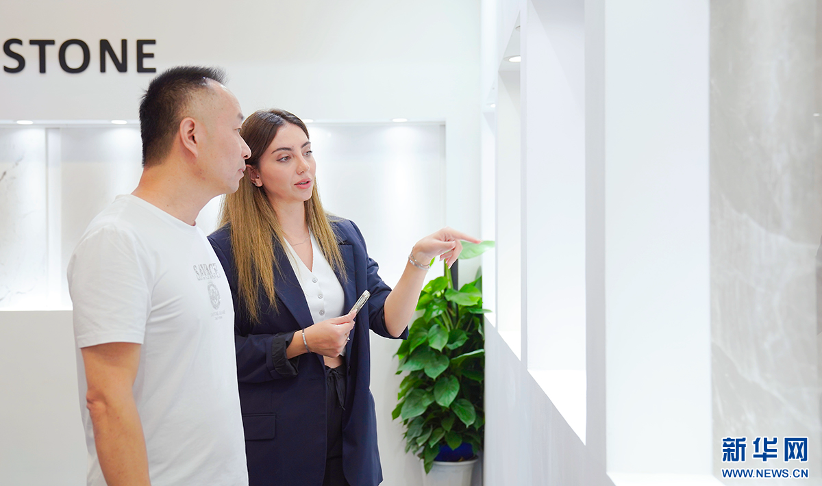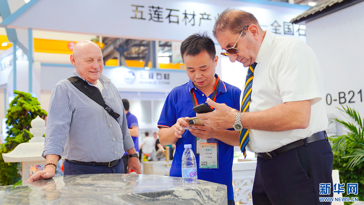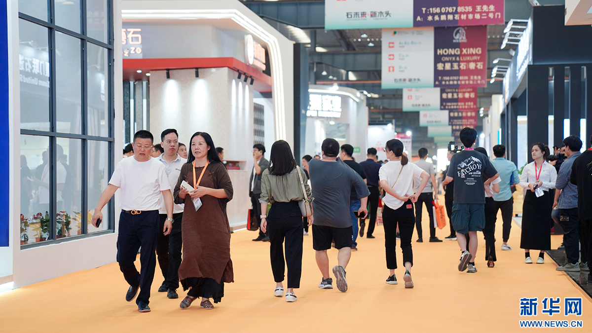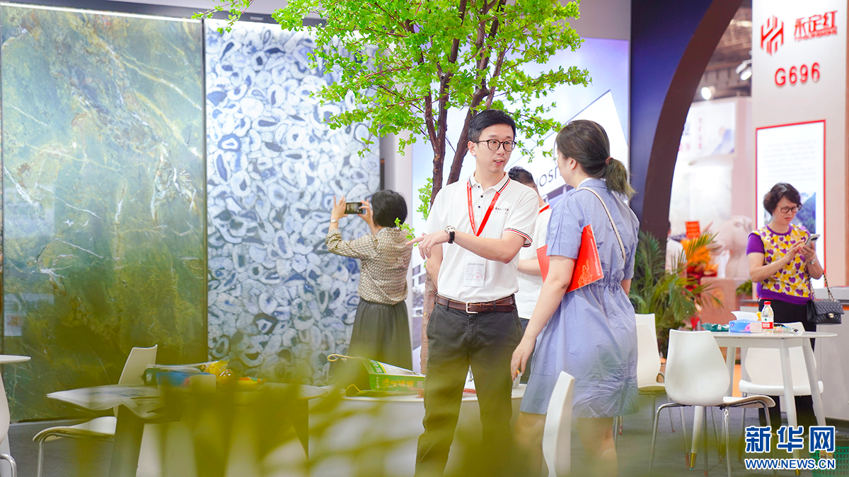 本届石博会吸引来自全球430多家参展品牌齐聚一堂,携近百款新品精彩首发。新华网发(林楷煜 摄)