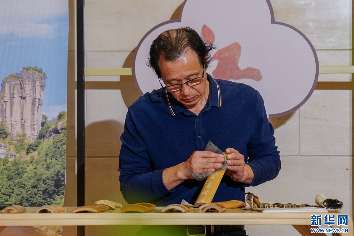 11月11日,非遗项目传承人张栋华在展示武夷竹刻制作技艺。新华网 肖和勇 摄