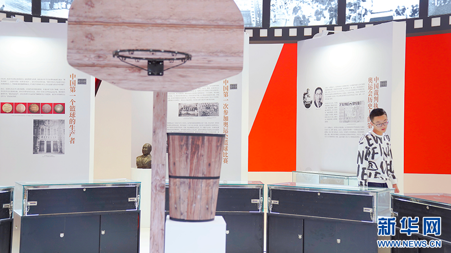 “中国篮球文化展”全面立体地呈现了中国篮球自1895年以来的发展历程和里程碑事件。新华网发(林楷煜 摄)