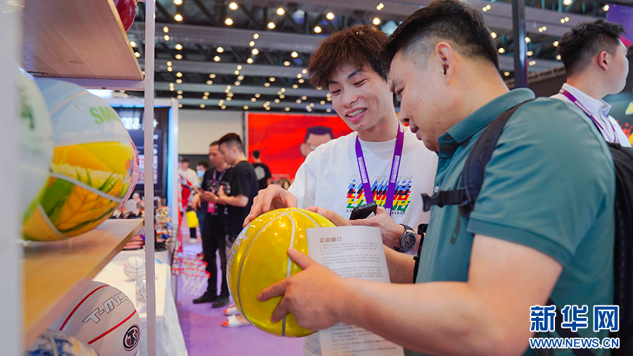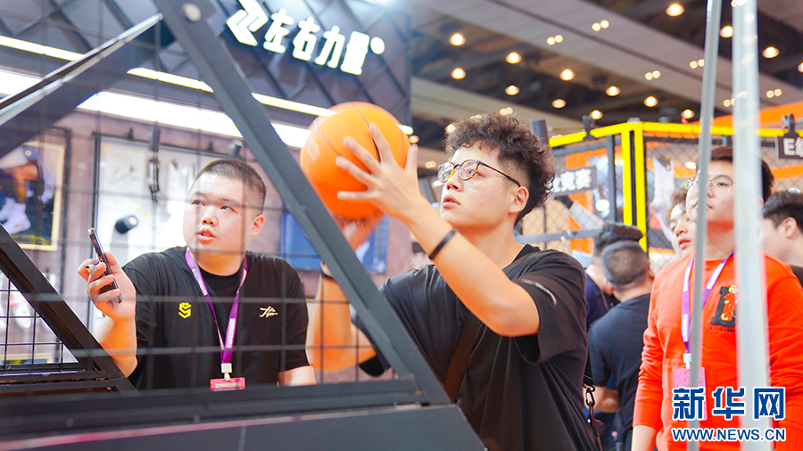 篮球爱好者打卡篮博会。新华网发(林楷煜 摄)