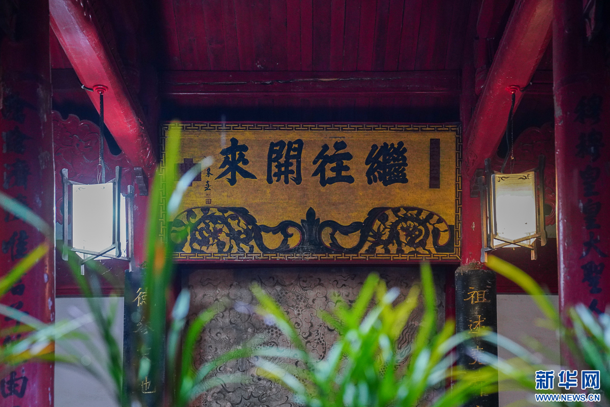 兴贤书院正堂悬挂朱熹题写的牌匾“继往开来”。新华网 肖和勇 摄