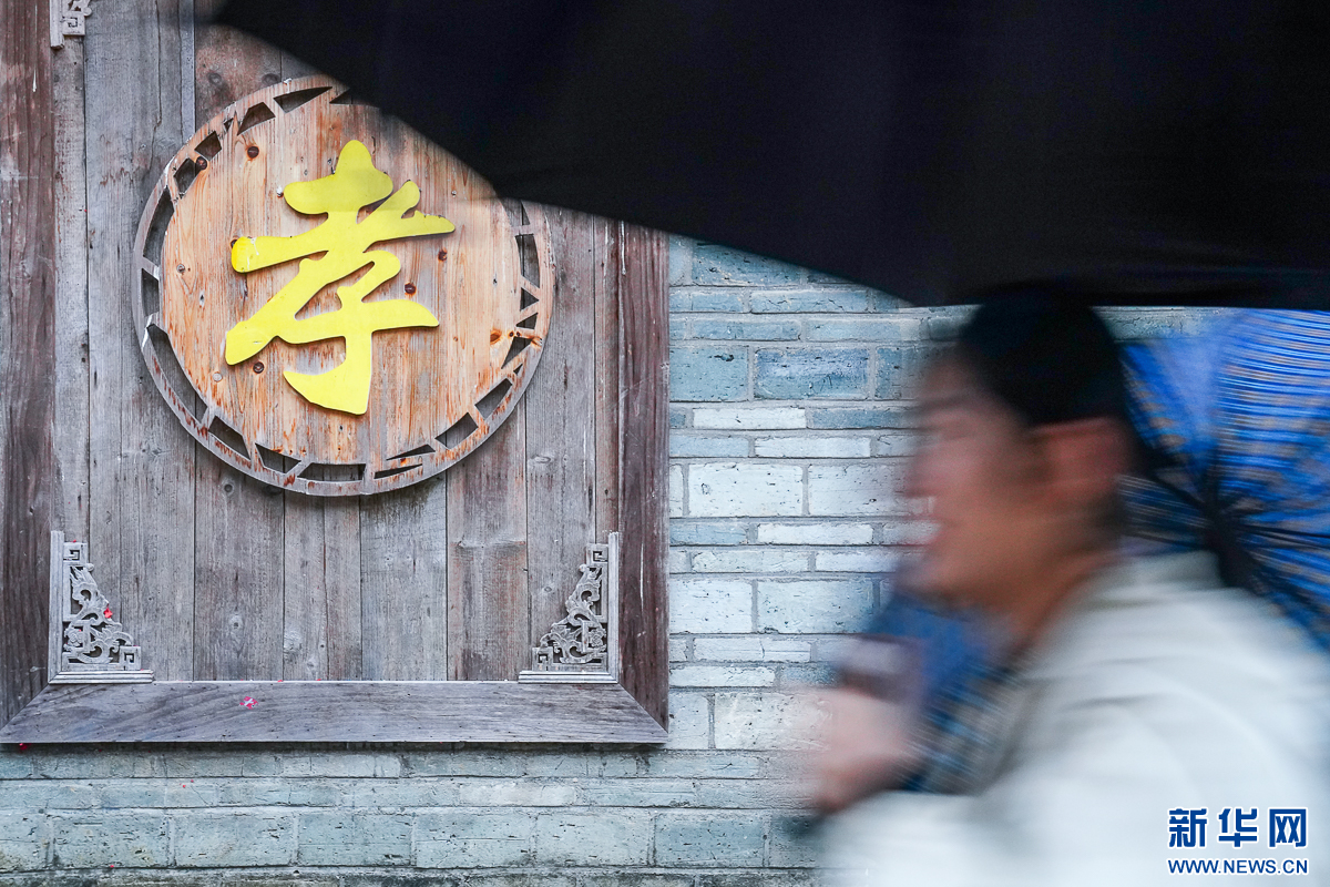 11月11日,一名小女孩在兴贤书院门口驻足。新华网 肖和勇 摄