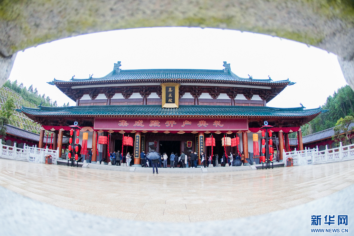 11月11日,媒体采编人员在朱子文化园集成殿参观。