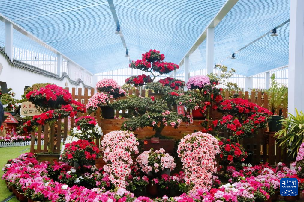 永福镇花卉中心展出的杜鹃花。新华社记者 秦宏 摄