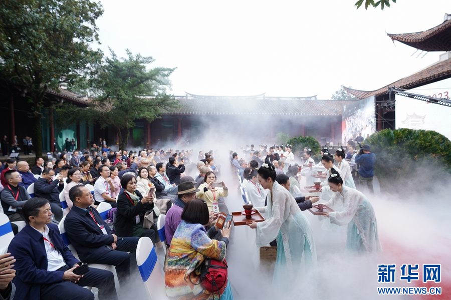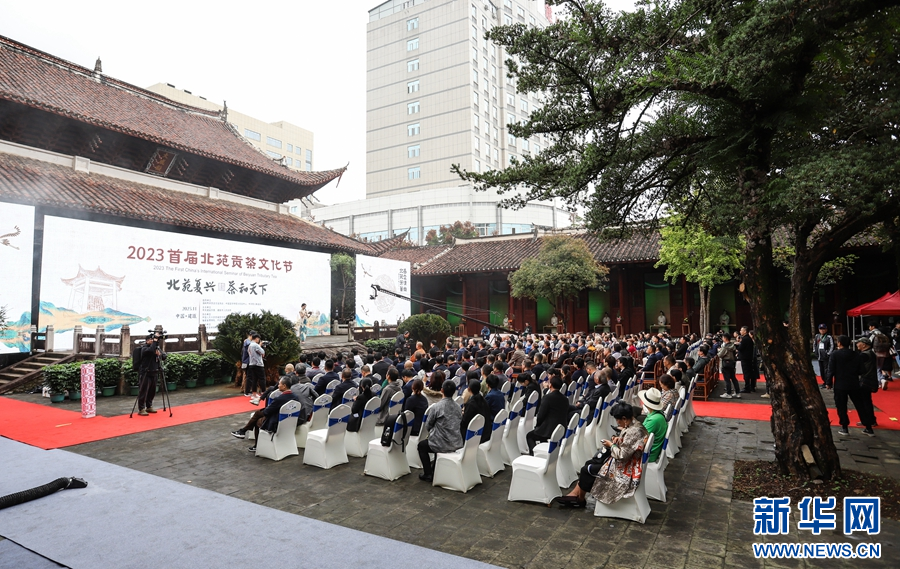 新华网福州11月13日电(刘默涵)11月12日,2023首届北苑贡茶文化节在福建省建瓯市开幕。来自英、德、日、韩等国家和海峡两岸的茶人、专家学者齐聚建瓯,开展茶文化交流,研讨复兴北苑贡茶。