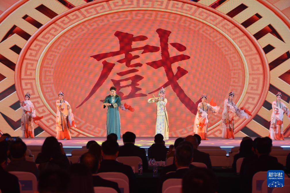 这是启动仪式上的闽剧《荔枝换绛桃》片段表演(11月17日摄)。新华社记者 李昊泽 摄