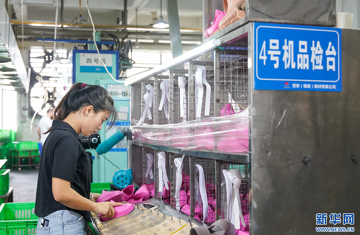 图为茂泰(福建)新材料科技有限公司的生产车间。转型为国内品牌企业代工后,企业自身的质检更严格了。 新华网 蒋巧玲 摄