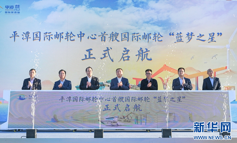 平潭首艘国际邮轮”蓝梦之星”正式启航。新华网发(林君斌 摄)