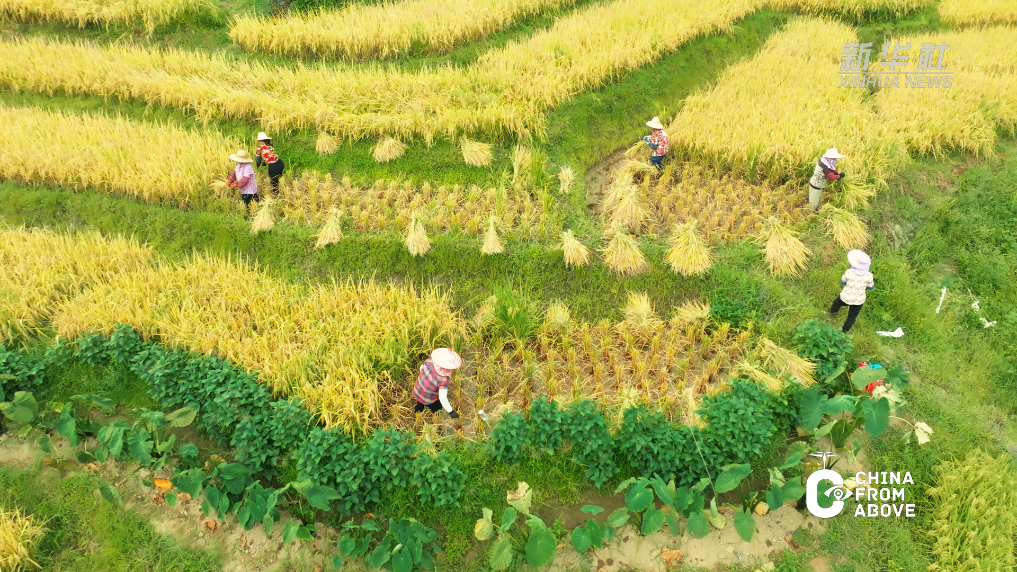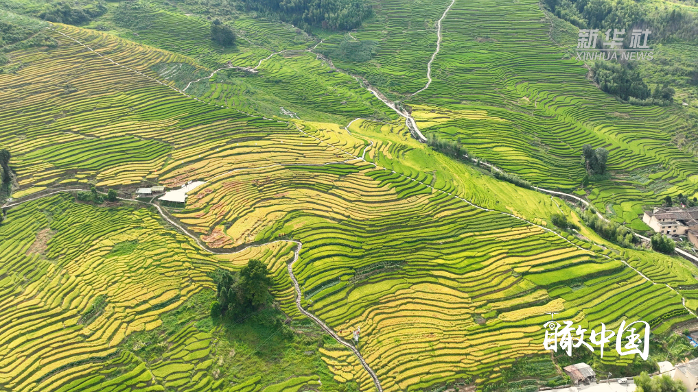近期,福建省宁德市屏南县长桥镇西南部的柏源村迎来了水稻丰收的时节。金黄的稻浪在蓝天下铺展,沿着丘陵蜿蜒起伏,划出一道道优美的弧线,此美景让人如痴如醉。