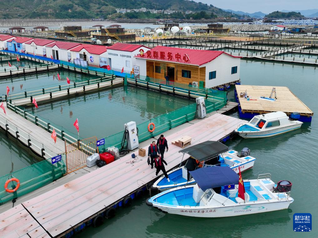 福建省宁德市霞浦县溪南镇七星海域,碧波荡漾,航道宽阔,疾速行驶的快艇激起阵阵浪花,两侧是一片片现代化的养殖渔排。走进七星海上社区,党群服务中心、志愿服务站、海上综治中心等设施一应俱全,工作人员正为海上居民提供法律咨询、信访接待、矛盾化解、水产养殖技术咨询等服务。