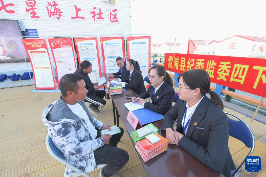 11月18日,福建省宁德市霞浦县纪委监委工作人员在溪南镇七星海上社区接访。新华社记者 林善传 摄