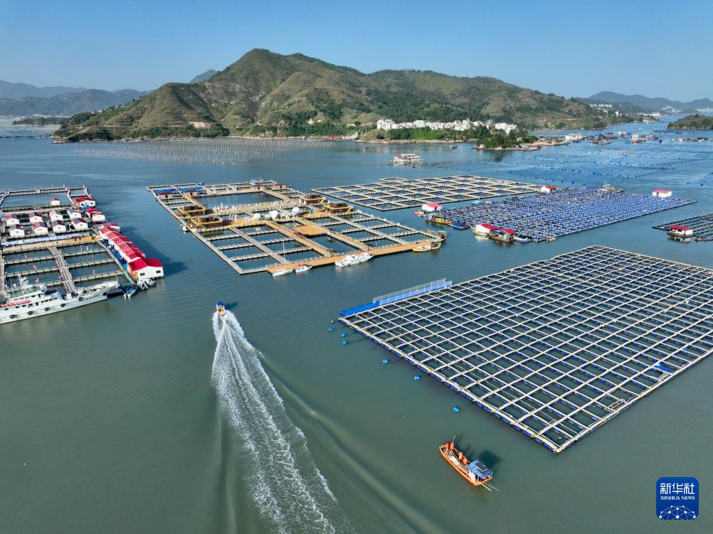 11月18日,船只在福建省宁德市霞浦县溪南镇七星海上社区养殖区行驶(无人机照片)。新华社记者 姜克红 摄