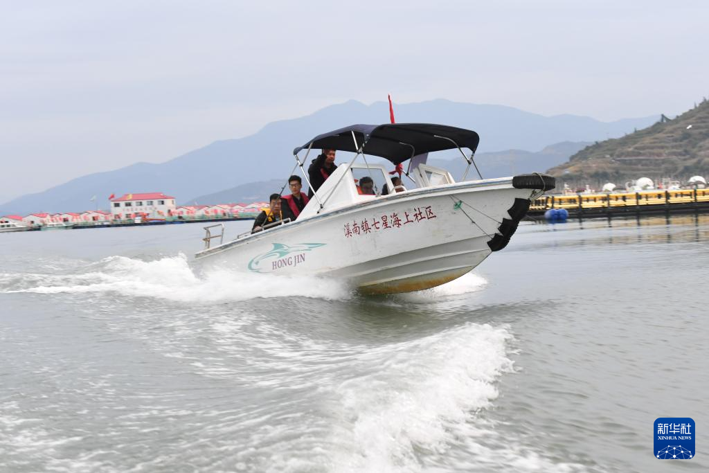 11月14日,福建省宁德市霞浦县溪南镇七星海上社区工作人员乘坐快艇前往辖区渔排进行民情走访。新华社记者 姜克红 摄
