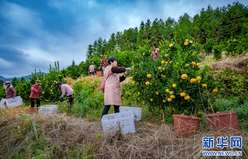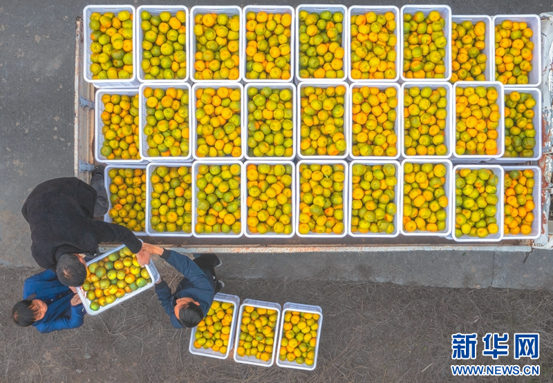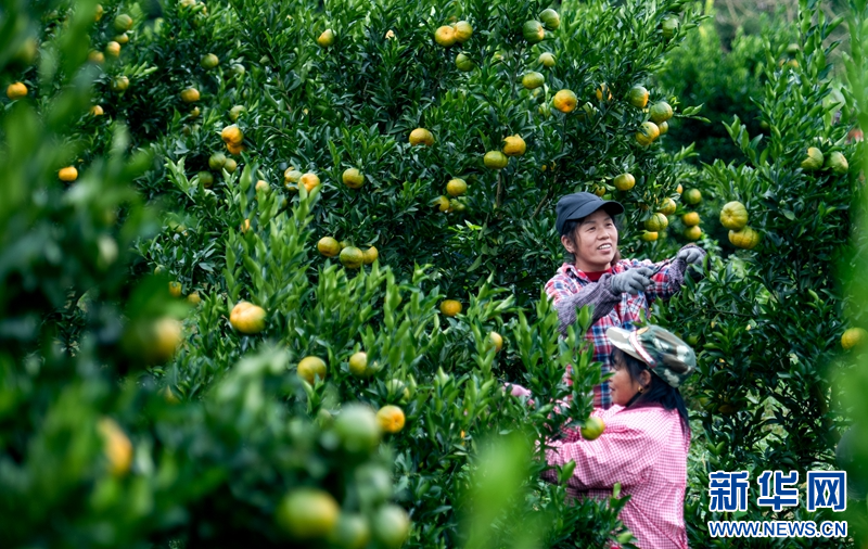 近日,永春县坑仔口镇福地村果农在采收永春芦柑。新华网发(康庆平 摄)
