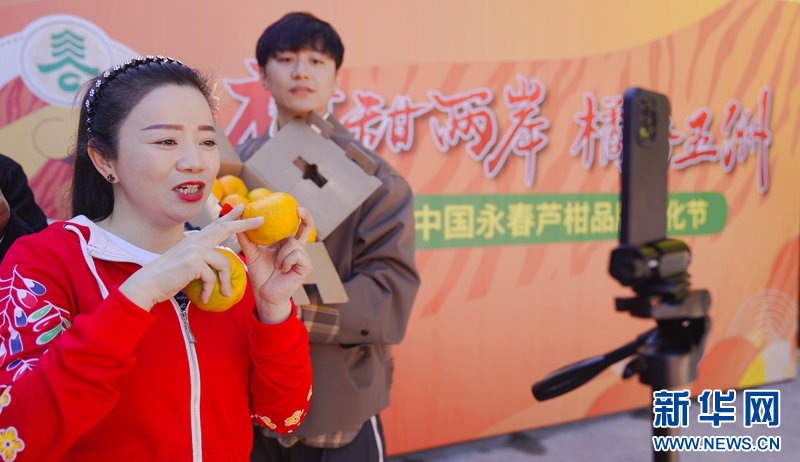 电商主播正在通过直播为永春芦柑扩销路。新华网发(林楷煜 摄)