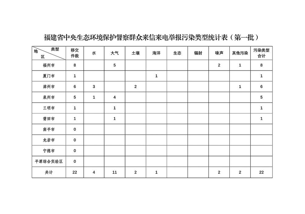 23日,中央第一生态环境保护督察组向我省移交第一批群众信访举报件22件,其中来电举报22件,来信举报0件。