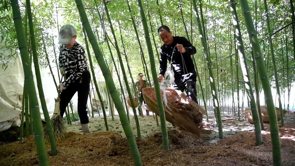 在东峰镇坑头村,竹农江合清正在对竹林进行丰产改造,提高鲜笋质量。据了解,目前东峰镇20个村场300多个农户从事雷竹种植,全镇雷竹种植面积超过1万亩,带动户均年增收超过6万元。