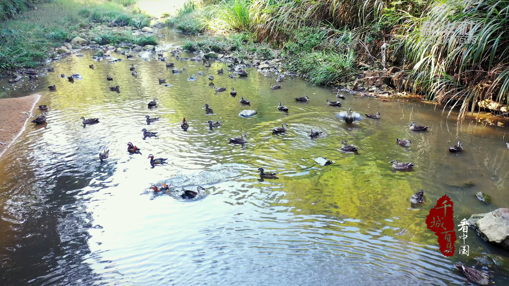 鸳鸯是国家二级保护动物,对栖息地环境要求较高,被称为“水质检测员”。近年来,埔上镇通过开展小流域综合整治及落实河长制工作、生态联合执法等措施,有效提升九龙山密溪流域的水质及生态环境。越来越多的鸳鸯不愿跋涉万里去北方,选择留下来繁衍后代,成为九龙山的“小精灵”。
