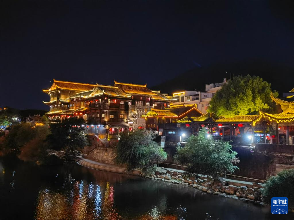 长汀国家历史文化名城汀江边夜景。新华社记者秦宏 摄