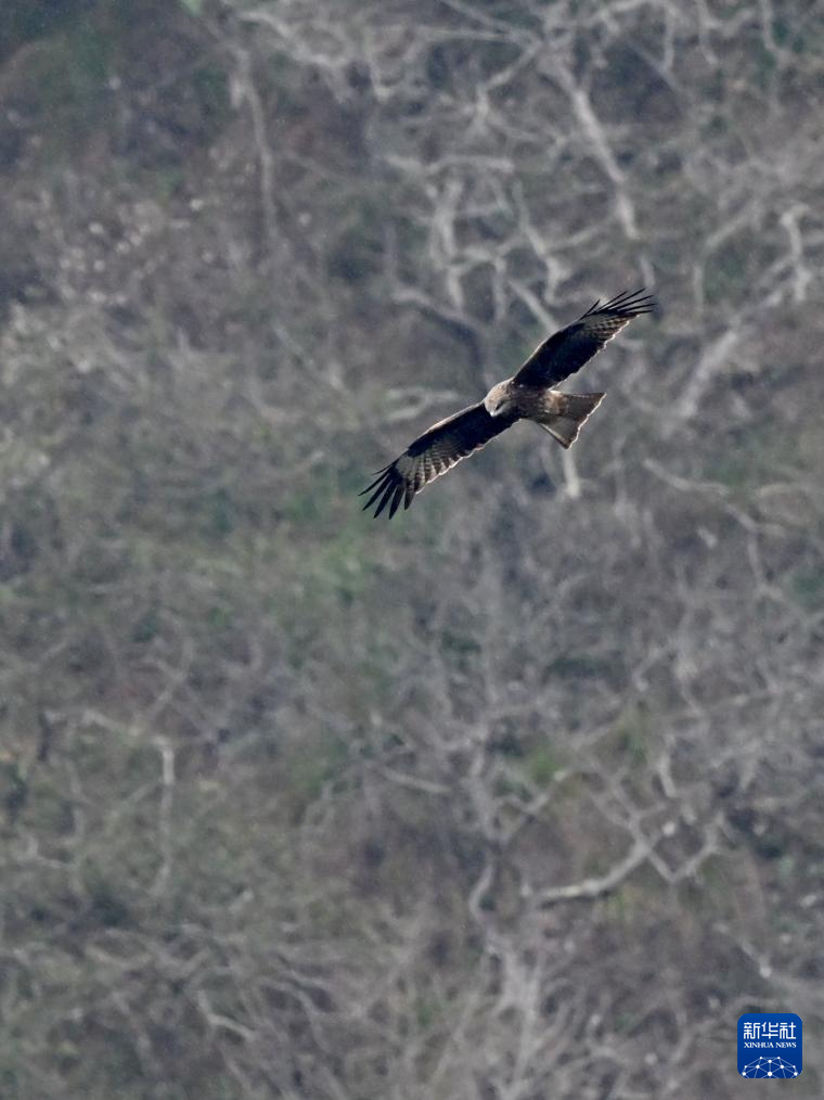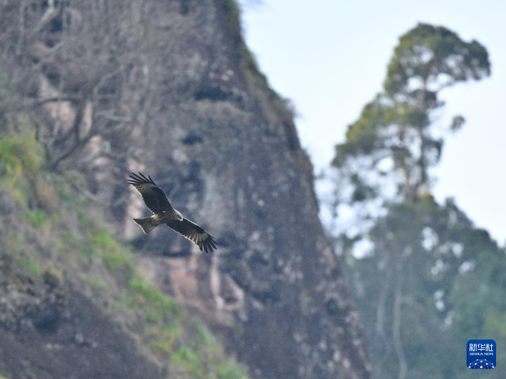 12月2日,一只黑鸢在福建省三明市泰宁县大金湖上空飞翔。新华社记者 姜克红 摄