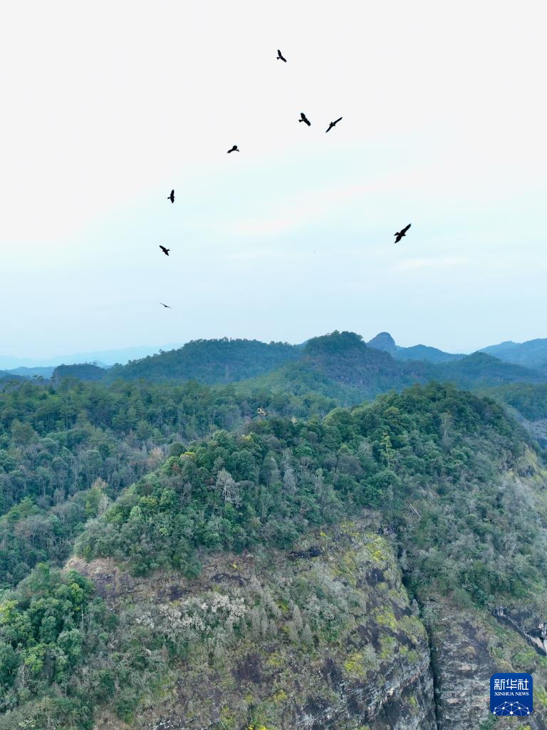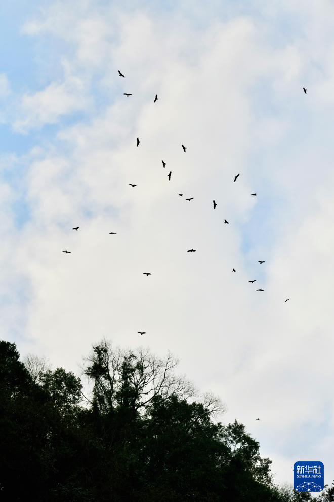 12月2日,一群黑鸢在福建省三明市泰宁县大金湖上空盘旋飞翔。新华社记者 姜克红 摄