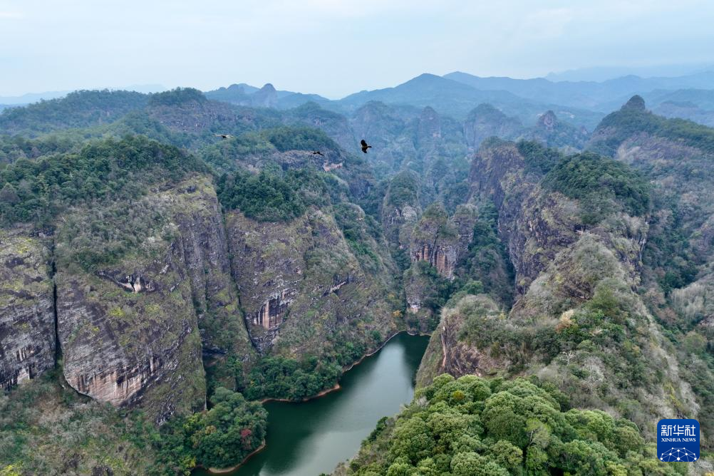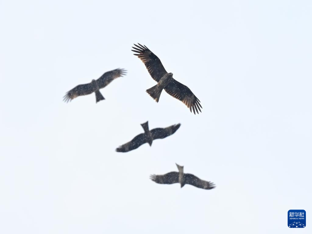 12月2日,几只黑鸢在福建省三明市泰宁县大金湖上空飞翔。新华社记者 姜克红 摄