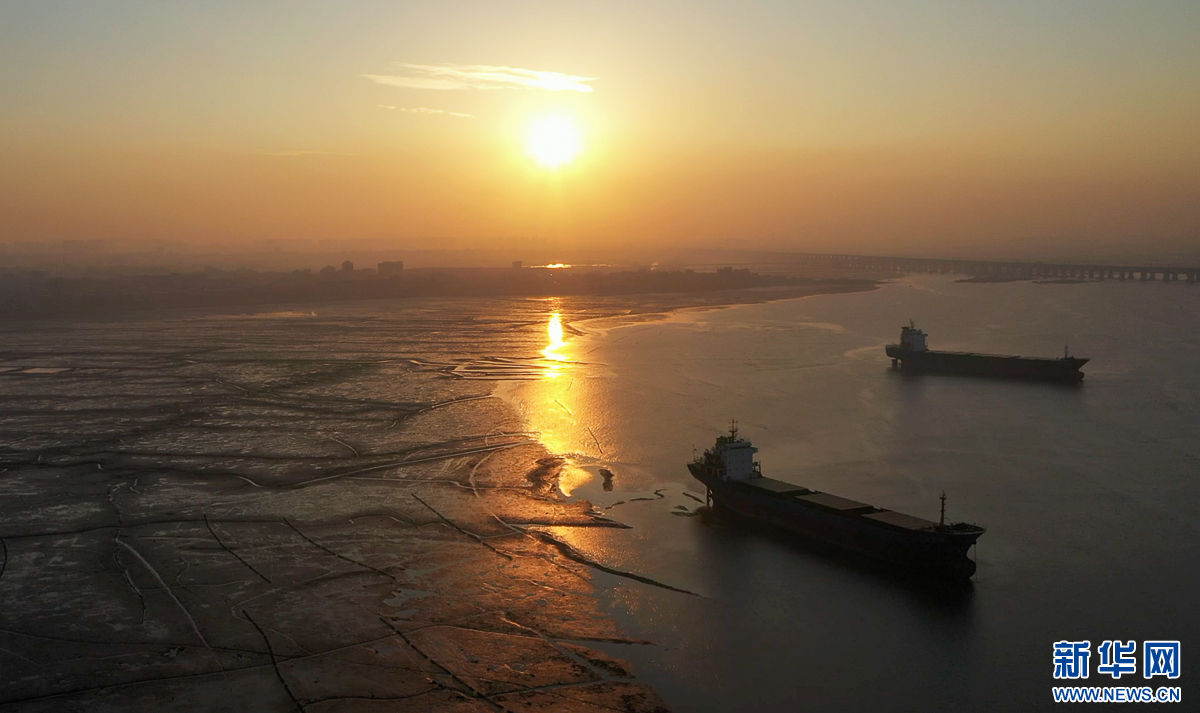 这是12月9日在泉州石狮石湖码头附近拍摄到的落日景观(无人机照片)。新华网 肖和勇 摄