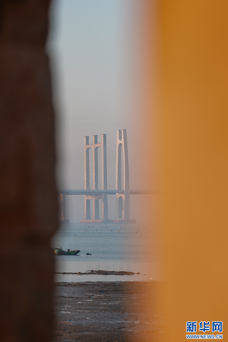 这是12月9日透过石屋窗口拍摄到的泉州湾跨海大桥。新华网 肖和勇 摄