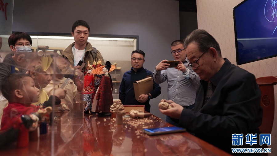 木偶头雕刻吸引众多市民观看。新华网发(林楷煜 摄)