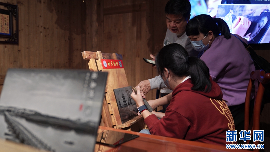 现场展示的影雕技艺吸引市民驻足。新华网发(林楷煜 摄)