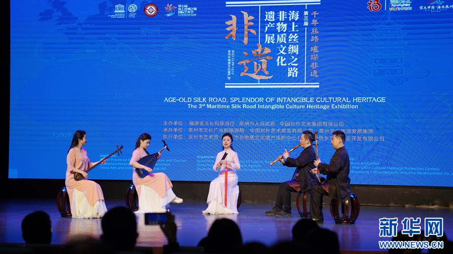 12月9日,第三届海上丝绸之路非物质文化遗产展在泉州启幕。图为开幕式上的南音表演。新华网发(林楷煜 摄)