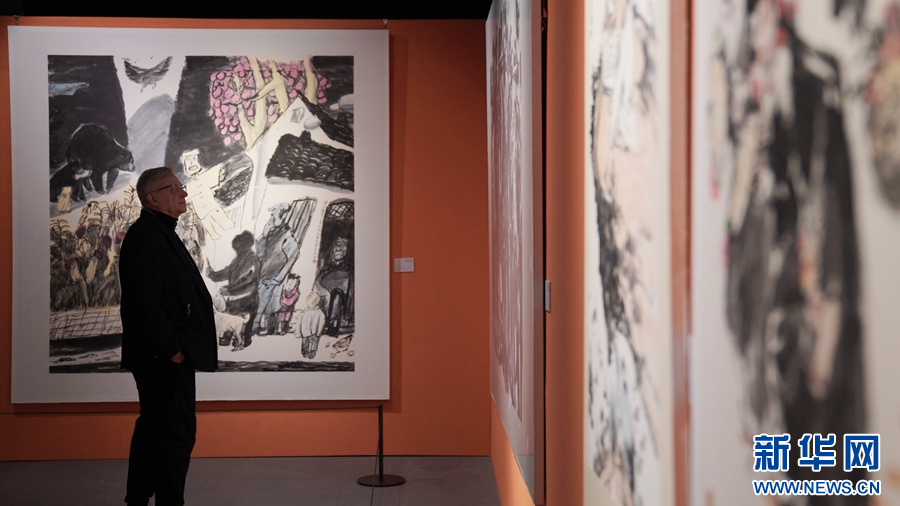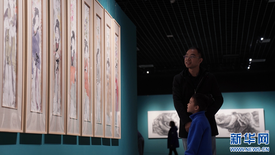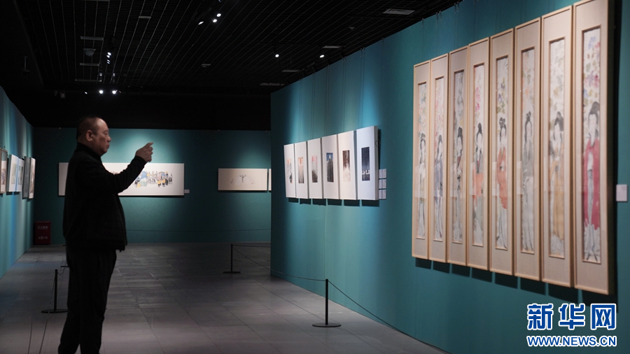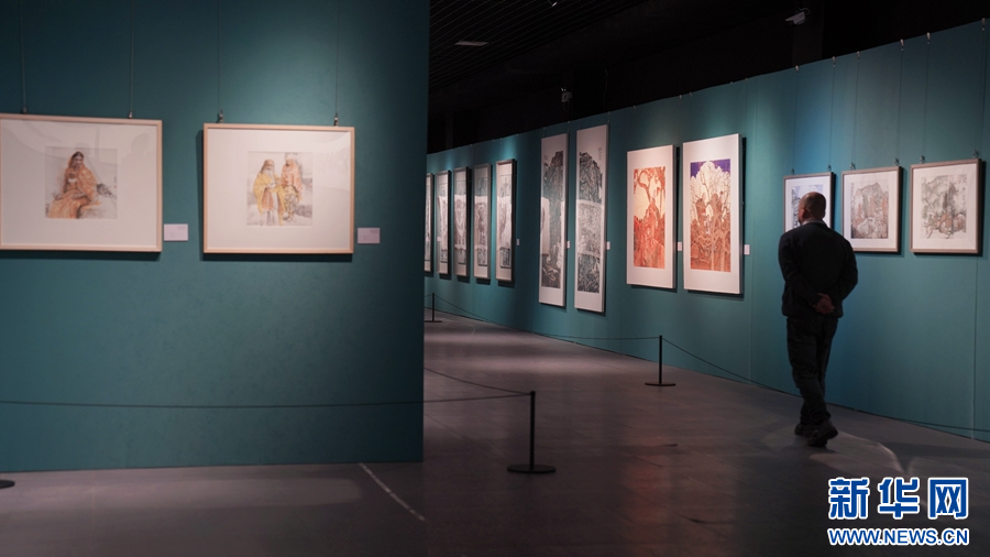 本次展览展出作品涵盖了国画、油画、版画等多种艺术形式。新华网发(林楷煜 摄)