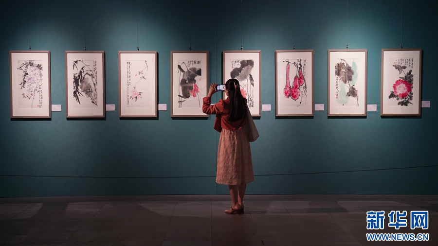 一位外籍友人在欣赏展出作品。新华网发(林楷煜 摄)