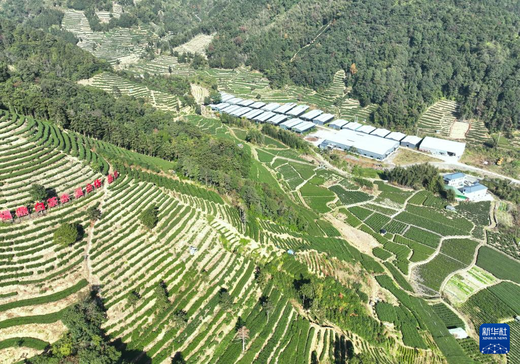 12月8日在赤溪村拍摄的茶山和菌菇大棚(无人机照片)。新华社记者 林善传 摄