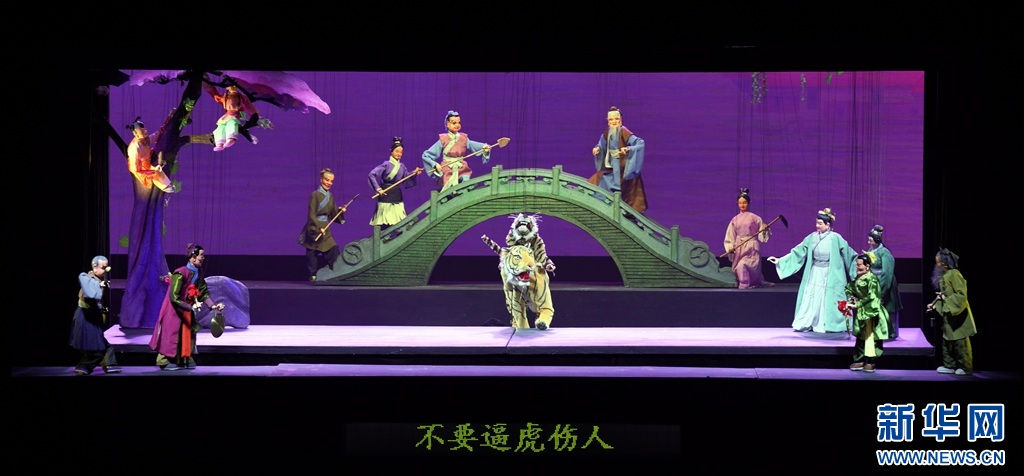 木偶戏《小金刚传奇》亮相开幕式演出。新华网发(林楷煜 摄)