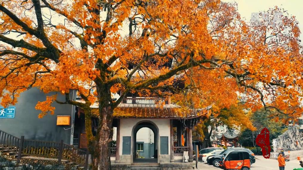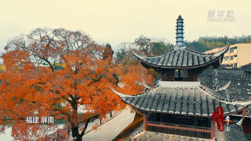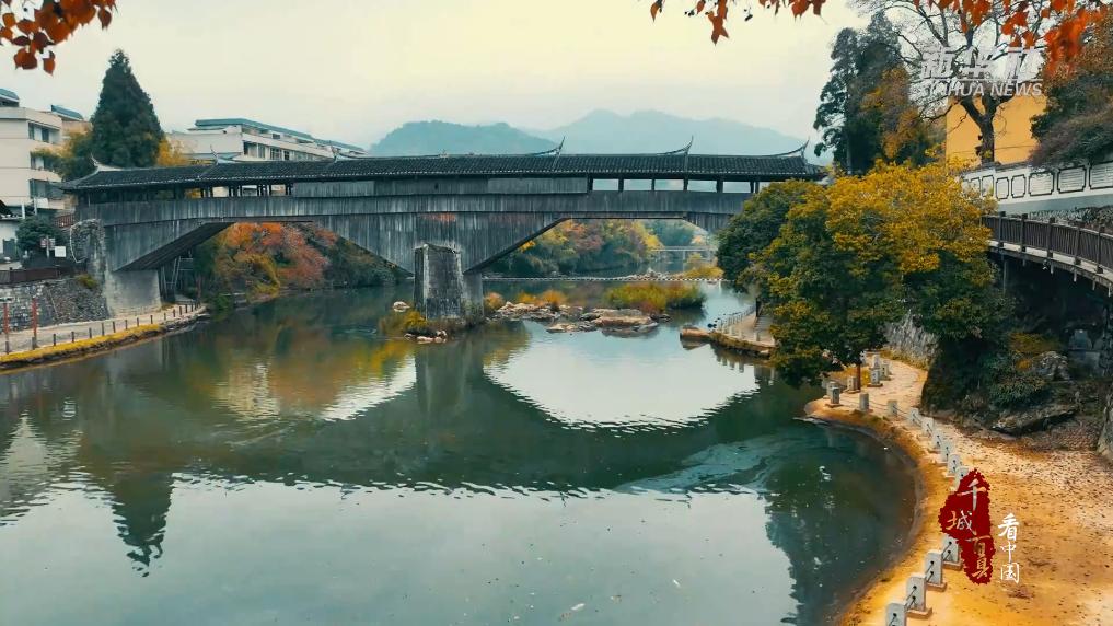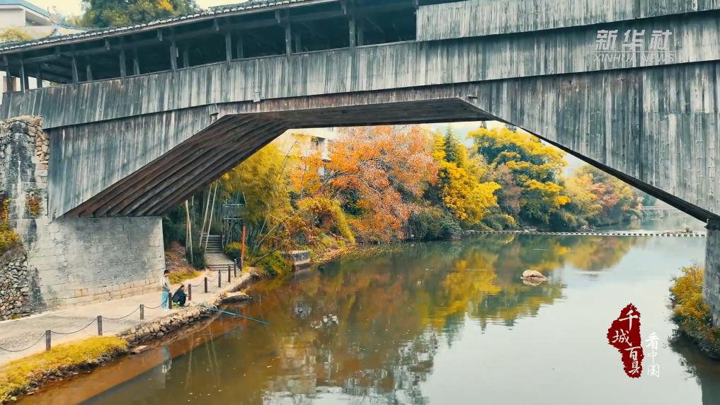 千乘桥位于福建省屏南县棠口乡棠口镇,始建于南宋理宗年间,一墩两孔,南北走向,廊屋顶部飞檐翘起,气势恢宏。廊桥边的乌桕树已有一百五十余年的历史,春天嫩红,夏天碧绿,秋末冬初最是精彩,嫩黄、金黄、橙黄、火红、褐红、深红……远远望去,好一树斑斓,为渐冷的冬日增添了一丝暖意。