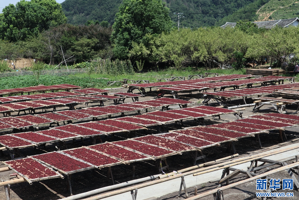 永泰县梧桐镇农户晒制的李干(资料图)。新华网发(永泰县委宣传部 供图)