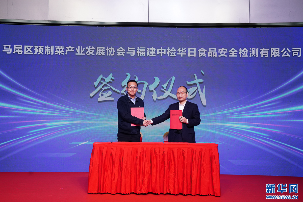 12月15日,马尾区预制菜产业发展协会与福建中检华日食品安全检测有限公司签约。新华网 肖和勇 摄