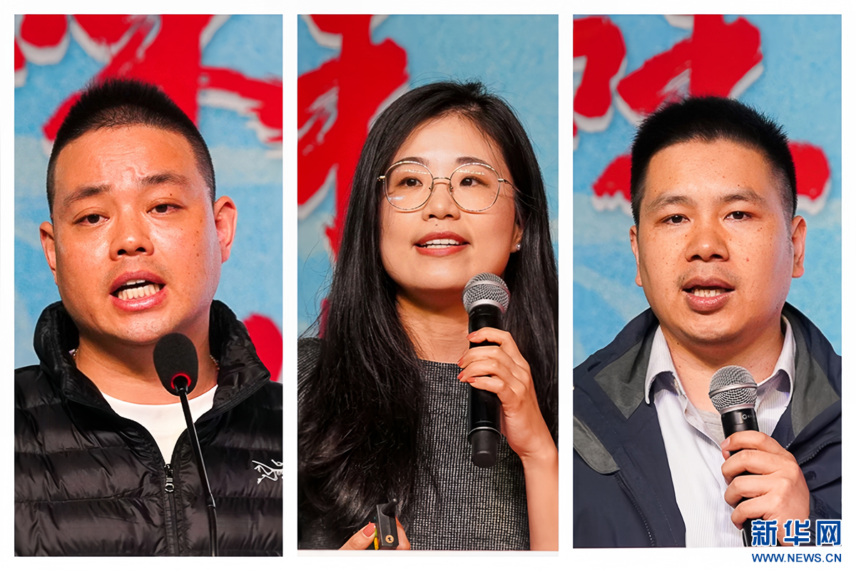 (拼版照片)12月15日举行的福建省水产预制菜产业高质量发展论坛上,3名企业代表进行主题演讲,分享预制菜产业发展经验。新华网 肖和勇 摄