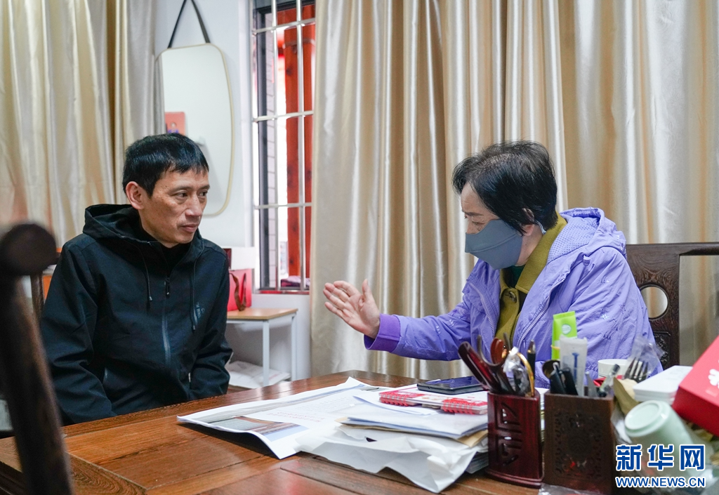 军门社区党委书记、居委会主任林丹(右)正在开展居民调解工作。 新华网 蒋巧玲 摄