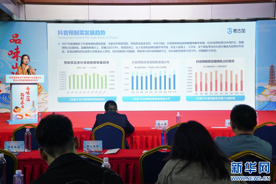 12月15日,大数据考古加运营总监春喜分享抖音预制菜经营经验。新华网 肖和勇 摄