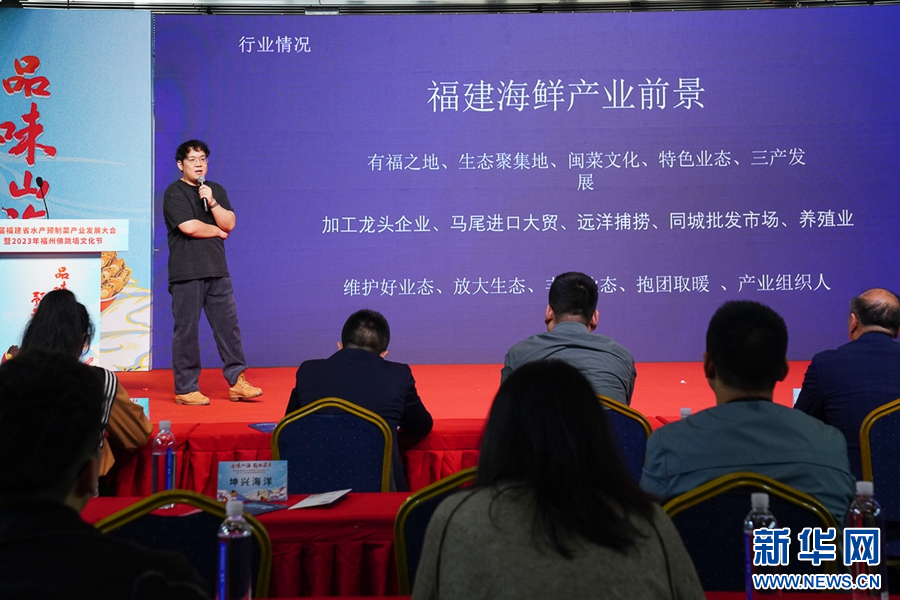 12月15日,抖音电商综合业务食品生鲜行业运营经理郭峰玮分享预制菜行业营销策略。新华网 肖和勇 摄