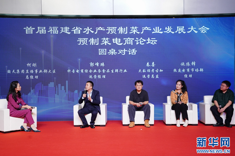 在12月15日举行的预制菜电商论坛上,嘉宾在进行圆桌对话。新华网 肖和勇 摄