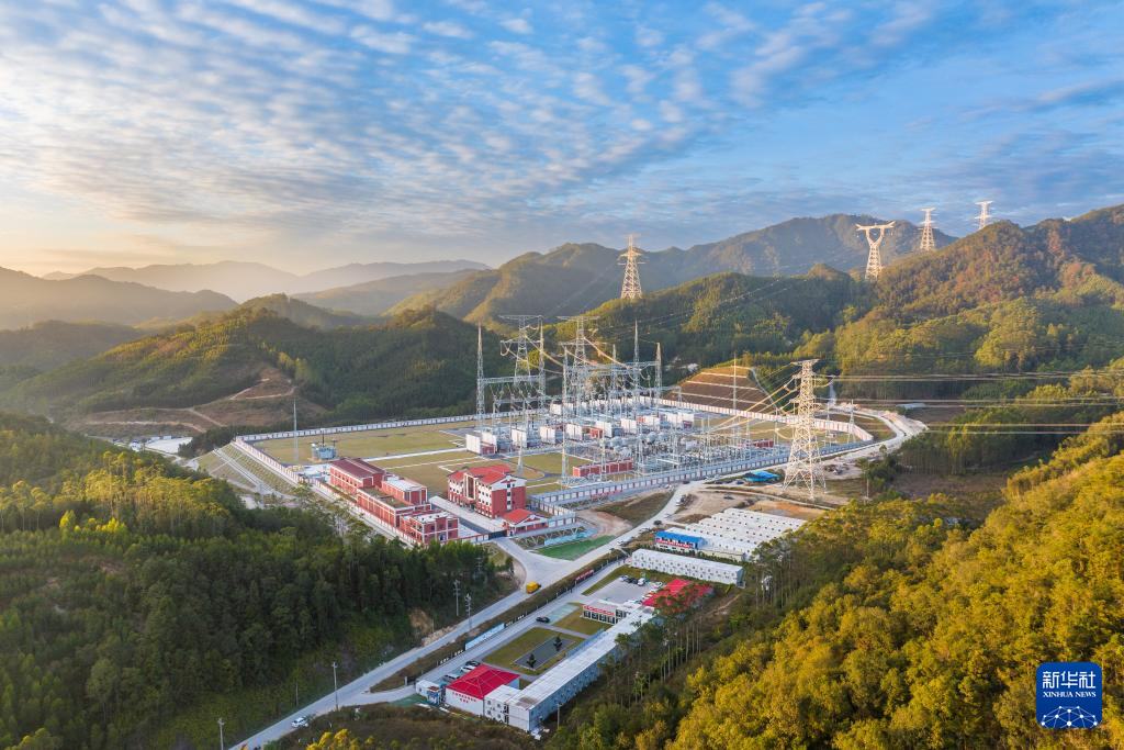这是12月8日在福建漳州市长泰区拍摄的1000千伏长泰变电站(无人机照片)。(林帆 摄)