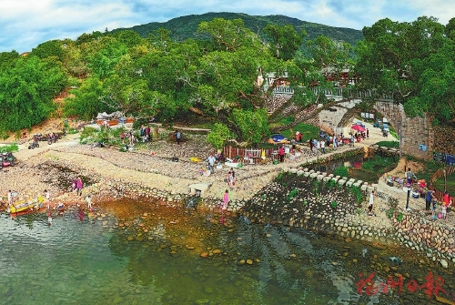 上周末,家住市区的林女士带着孩子来到位于永泰县梧桐镇大樟溪畔的“榕水谣”景区,“这里山清水秀,很适合带孩子来游玩”。