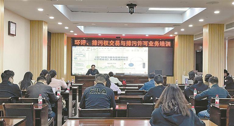 昨日,市生态环境局组织召开业务培训会指导排污权核定。(市生态环境局 供图)
